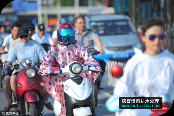 2016年6月2日,廣西南寧市,連日高溫高濕的酷熱天氣,為防止暴曬,許多騎車出行的市民“全副武裝”都把自己嚴(yán)嚴(yán)實實的包裹起來,裹成“蒙面超人”。