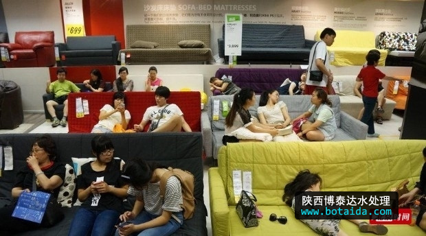 2013年07月28日,北京,當(dāng)天北京再次迎來一個35度以上的高溫天氣,為了躲避酷暑很多老百姓選擇了到有空調(diào)的大型商場去購物,餐飲和避暑。宜家家居客廳區(qū)沙發(fā)成了搶手貨。