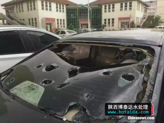 2016年6月13日,雞蛋大的冰雹襲擊山西長(zhǎng)治,多輛汽車玻璃被砸碎。 中新網(wǎng) 圖