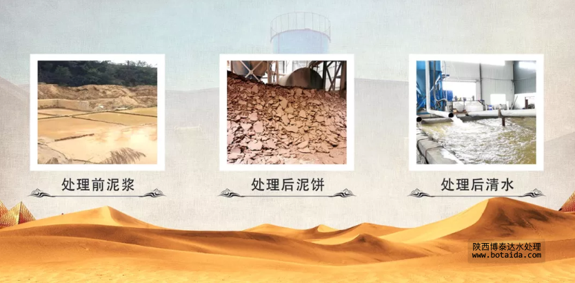 第二階段:泥漿輸送至三氫凈化體,利用該處理罐重力沉降作用,使其污水凈化、固液分離,清水溢流可循環(huán)利用;